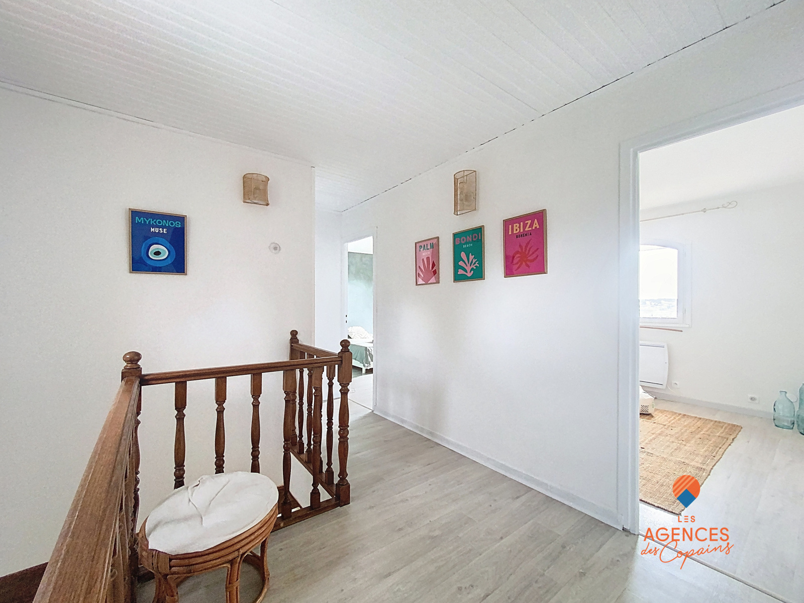 LA SEYNE SUPERBE VUE MER JOLIE VILLA T5 4 CHAMBRES, vaste salon séjour ouvrant sur terrasse avec vue mer, grande cuisine équipée, salle d'eau + salle de bains, 2 WC, grande véranda avec cuisine d'été et four à bois ouvrant sur jardin avec arbres fruitiers, très grand garage, climatisation réversible, calme absolu
