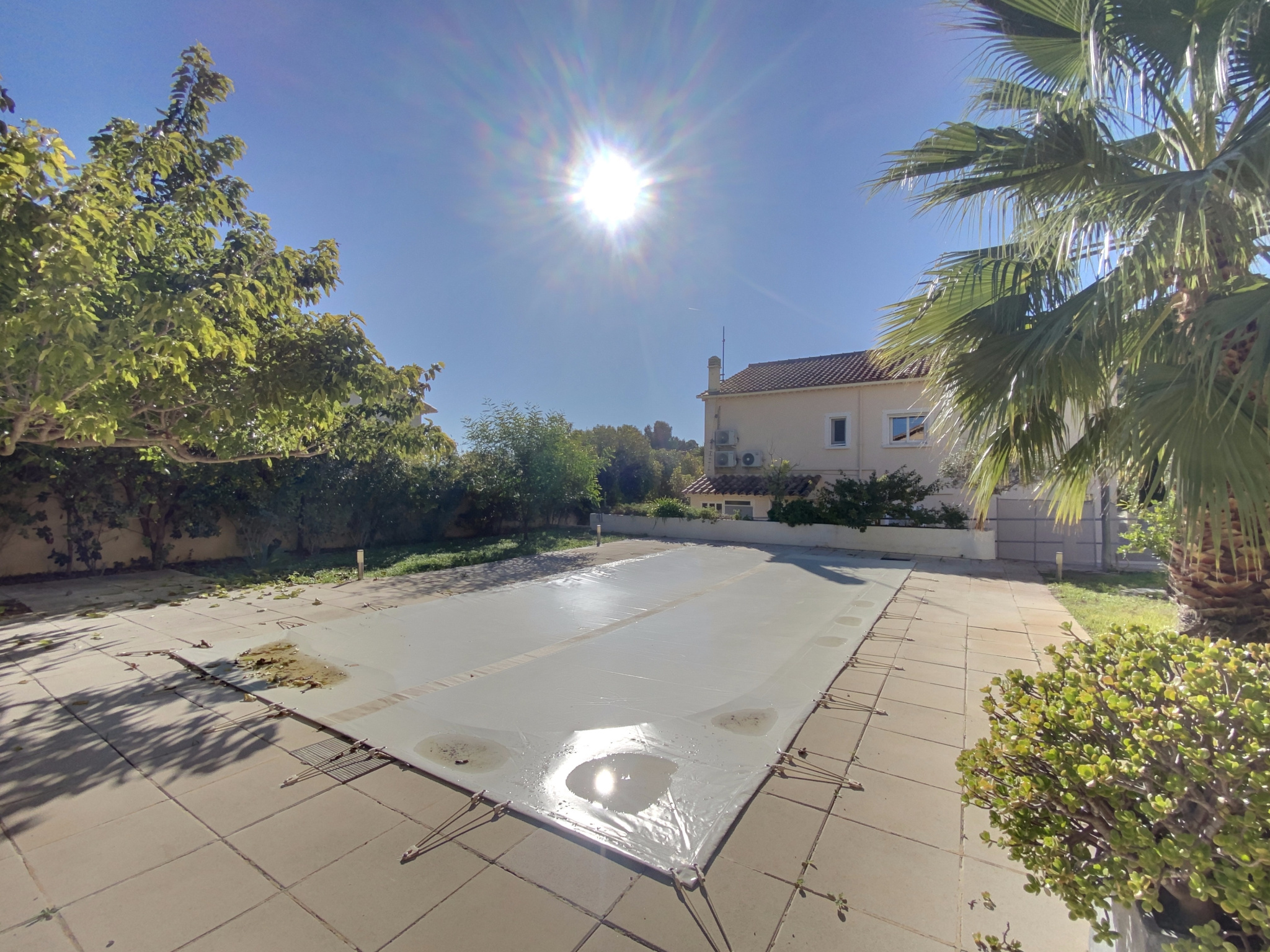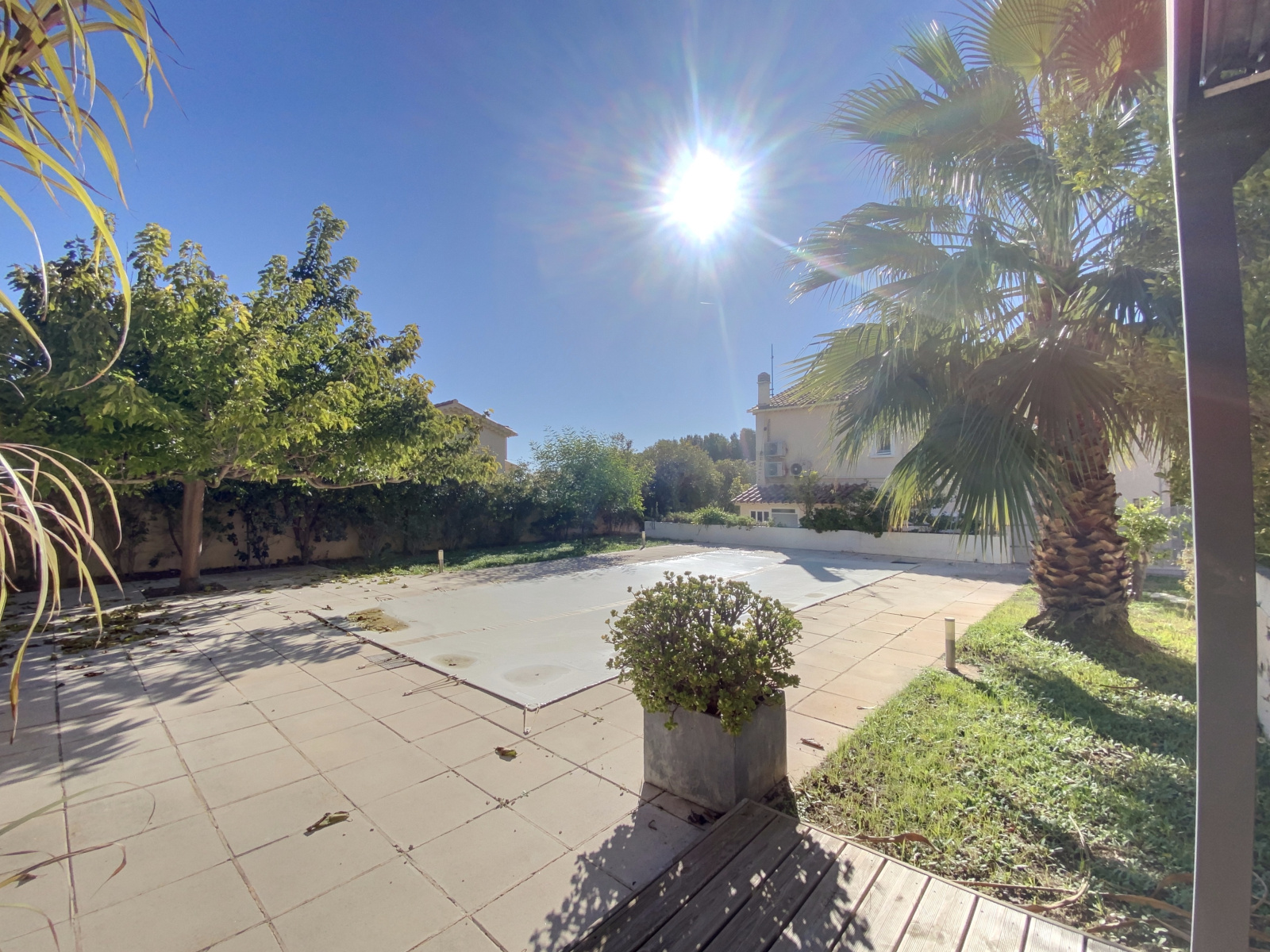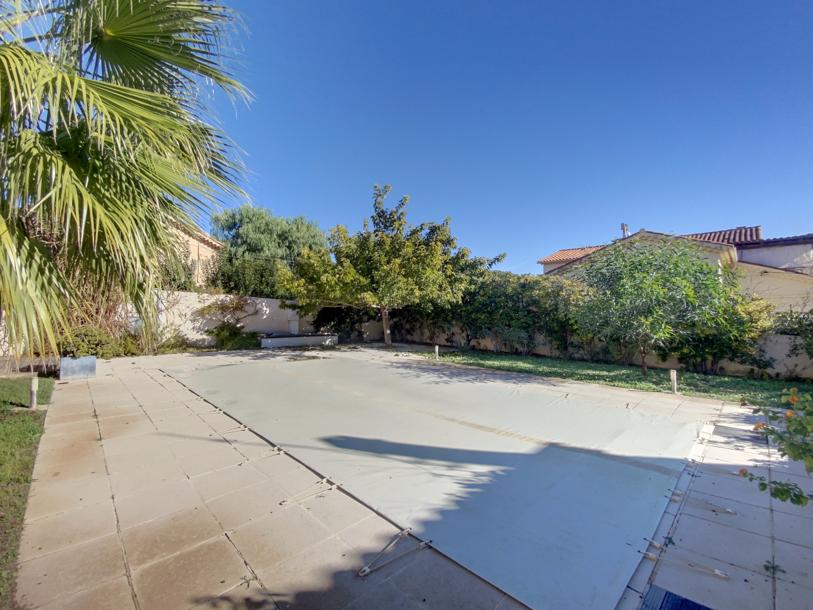La villa est édifiée sur une parcelle de 840m² de terrain avec piscine, garage indépendant et dépendances.
