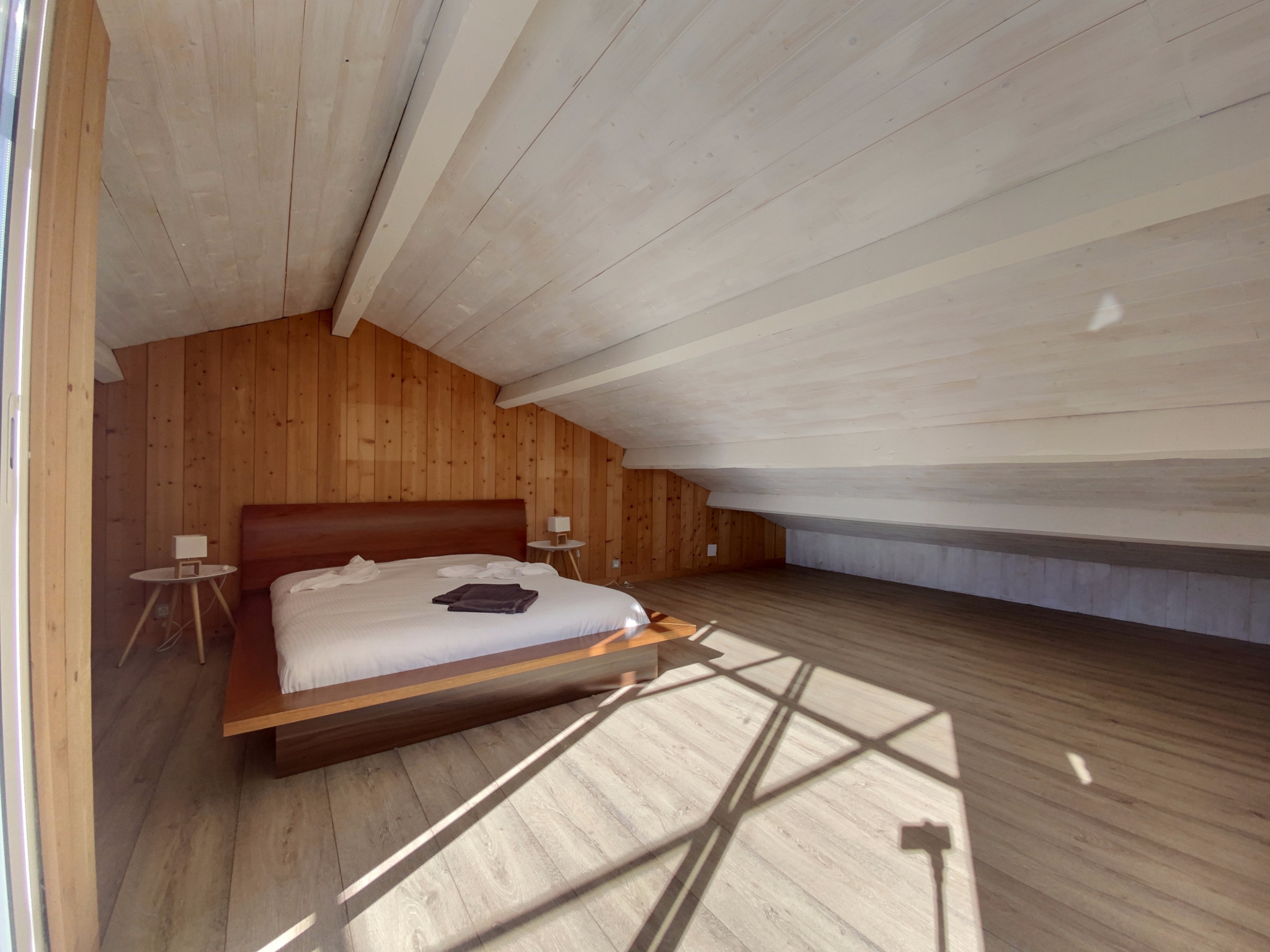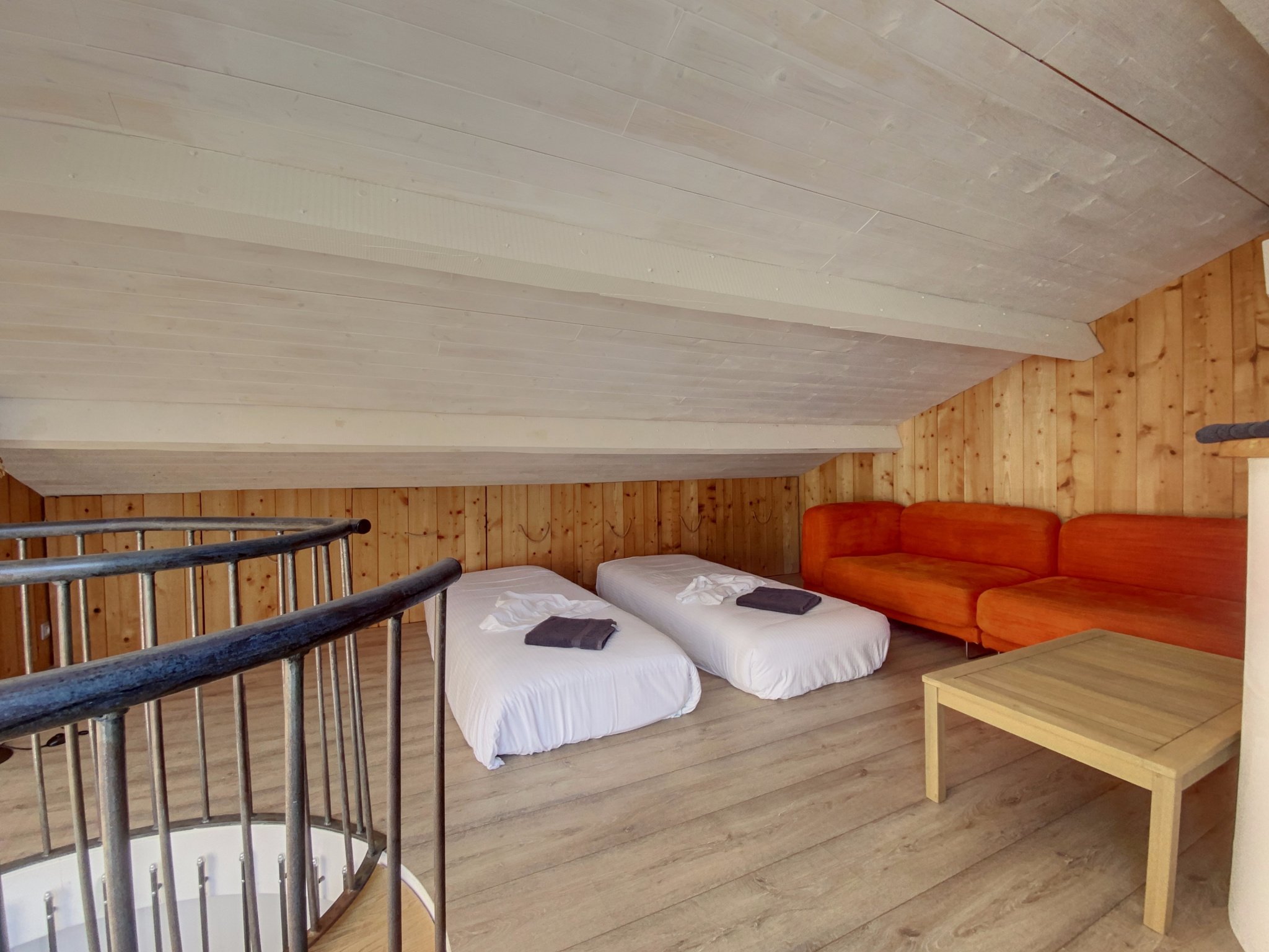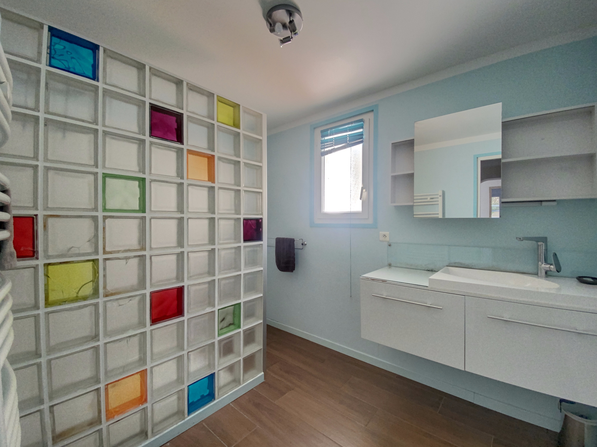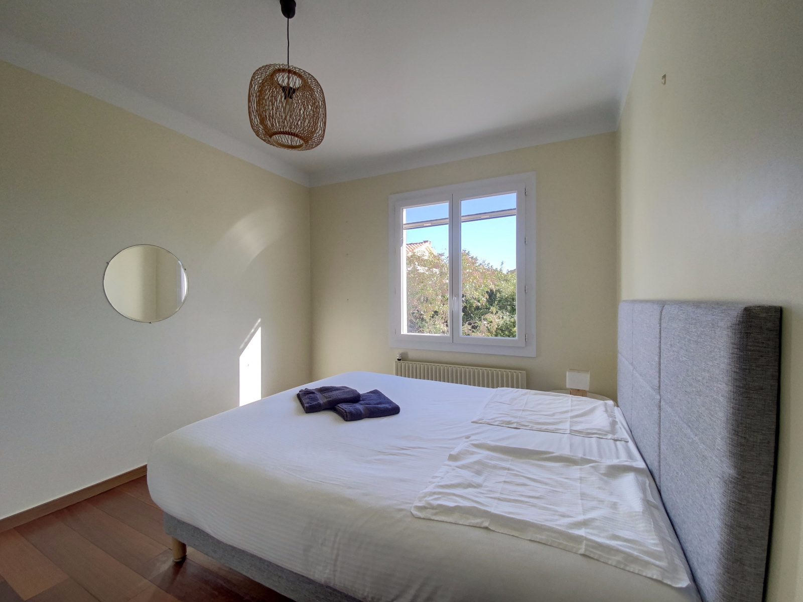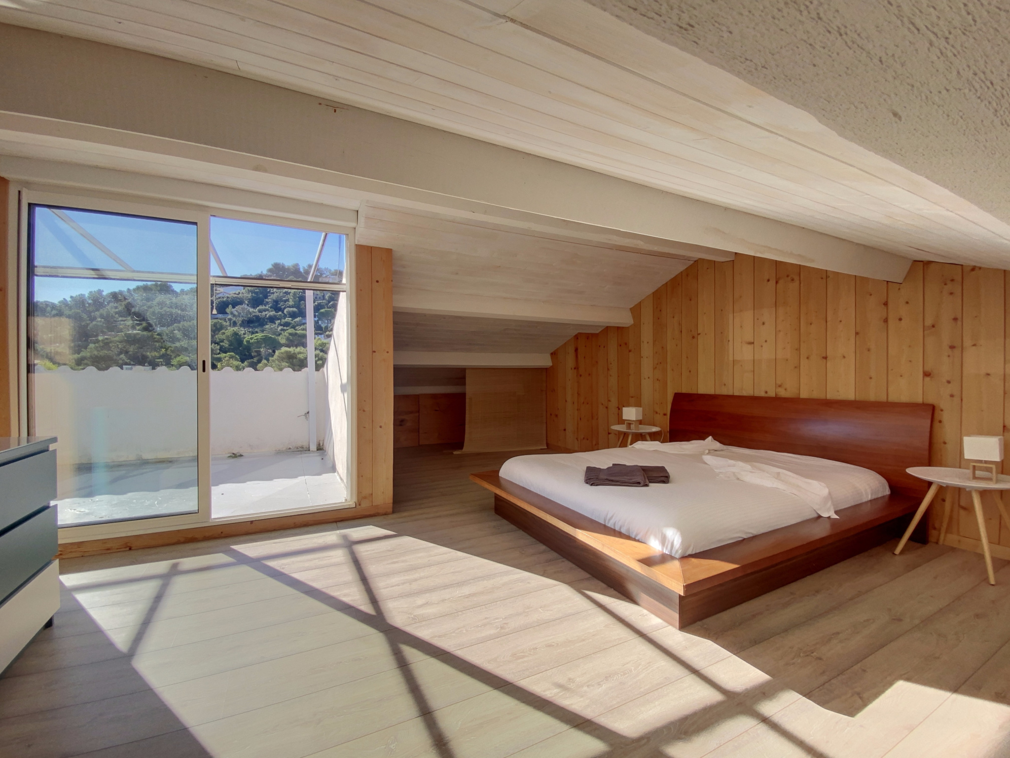 A l'étage un grand salon séjour avec vue mer, une cuisine aménagée, trois chambres et une salle de bain. Vous profiterez aussi en duplex d'une très belle suite parentale avec salle de bain privative et accès à une terrasse sans aucun vis à vis à part la mer.