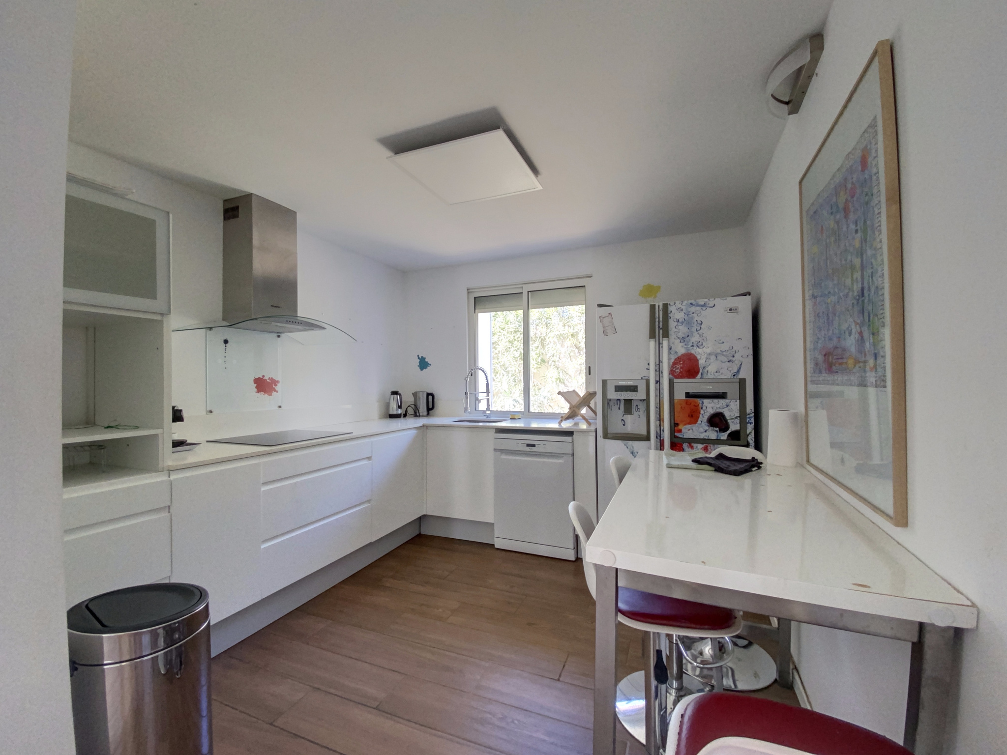 Au RDC on trouve une entrée donnant sur un superbe salon séjour exposé sud ouest baigné de lumière grâce à de larges baies vitrées équipées de stores californiens motorisés, cuisine semi ouverte, deux chambres, une salle d'eau et un coin buanderie.