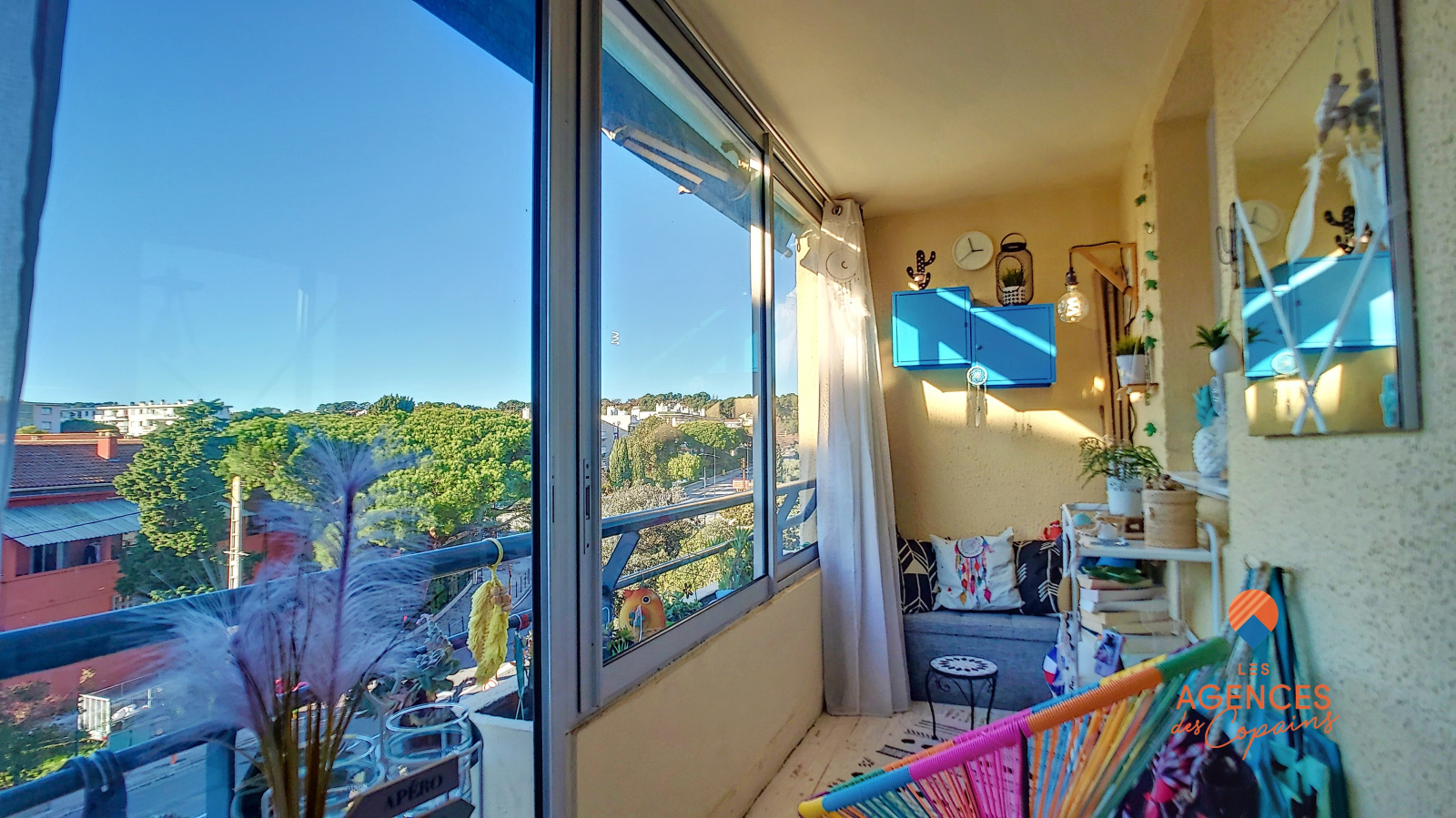 LA SEYNE SUR MER - LES SABLETTES, dans une résidence fermée et sécurisée en plein coeur des Sablettes, joli 2 pièces de 39, 10 m² habitables (24,10 m² Loi Carrez) rénové, cuisine aménagée et équipée ouverte sur séjour, belle luminosité, beaux volumes, des rangements, climatisation réversible, loggia avec vue dégagée, exposition ouest, vendu avec place de parking privée. Plage, commerces et transports à pieds !