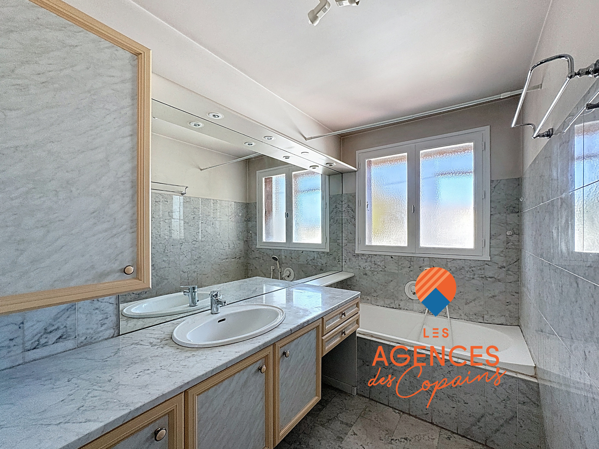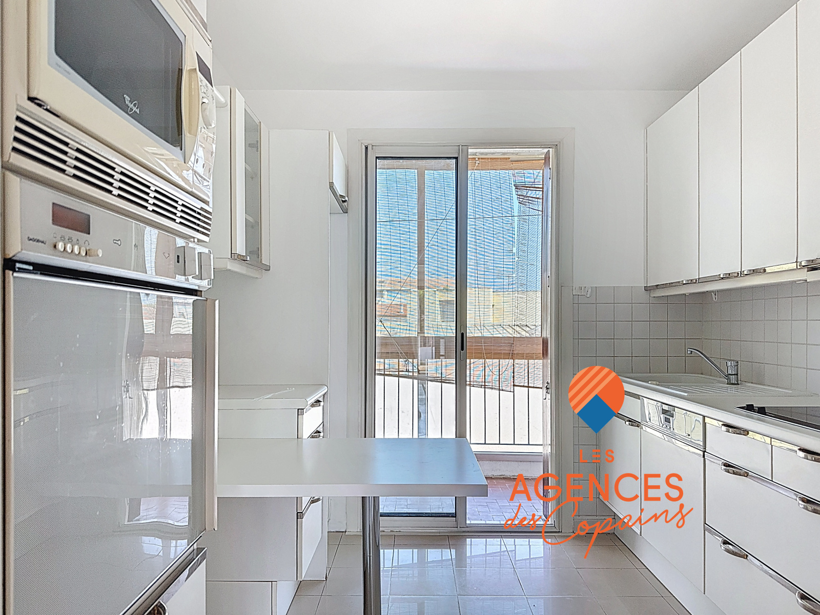 Idéalement situé au premier étage d'une petite résidence sécurisée proche des commerces . Magnifique quatre pièces de 85 m² en parfait état, double séjour donnant sur une belle terrasse ensoleillée, cuisine indépendante équipée donnant sur loggia fermée, deux chambres donnant sur une deuxieme terrasse, salle de bains et WC séparé .