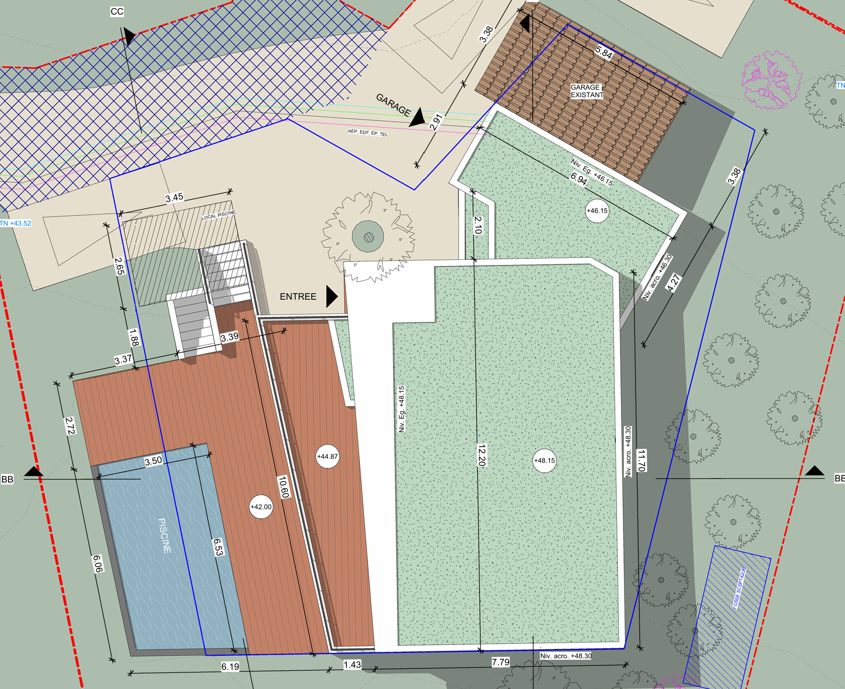 Très rare sur le secteur, Magnifique terrain de 815 m² vendu avec un permis de construire pour une villa de 170 M² habitable avec double garage, piscine et pool house .