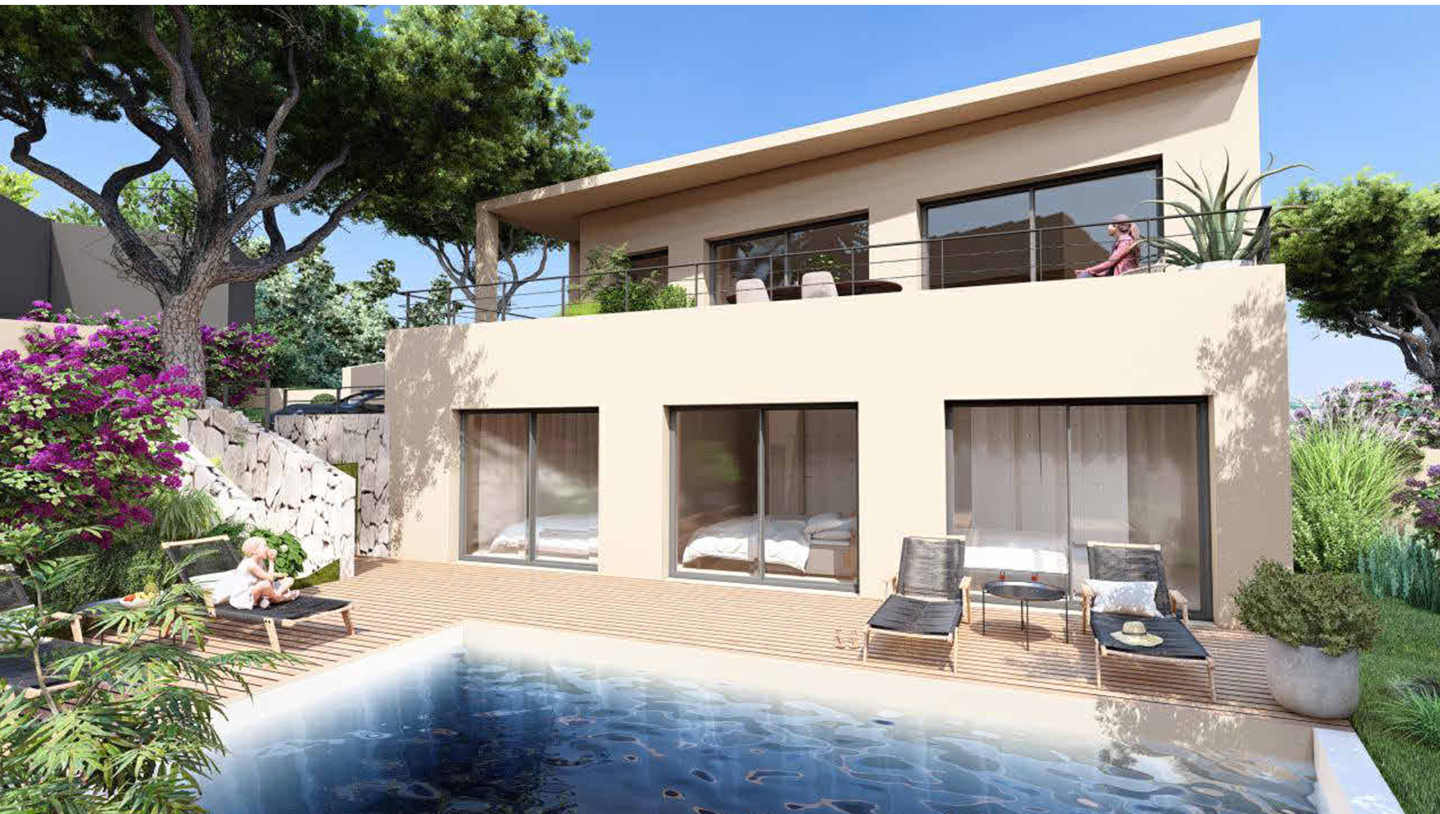 La villa prévue est une villa d'architecte pensée et réalisée avec le célèbre cabinet "331 Corniche" à Marseille .
