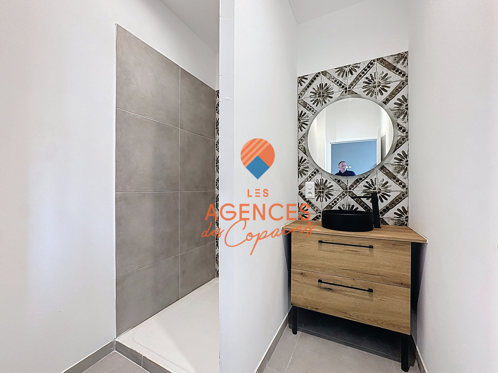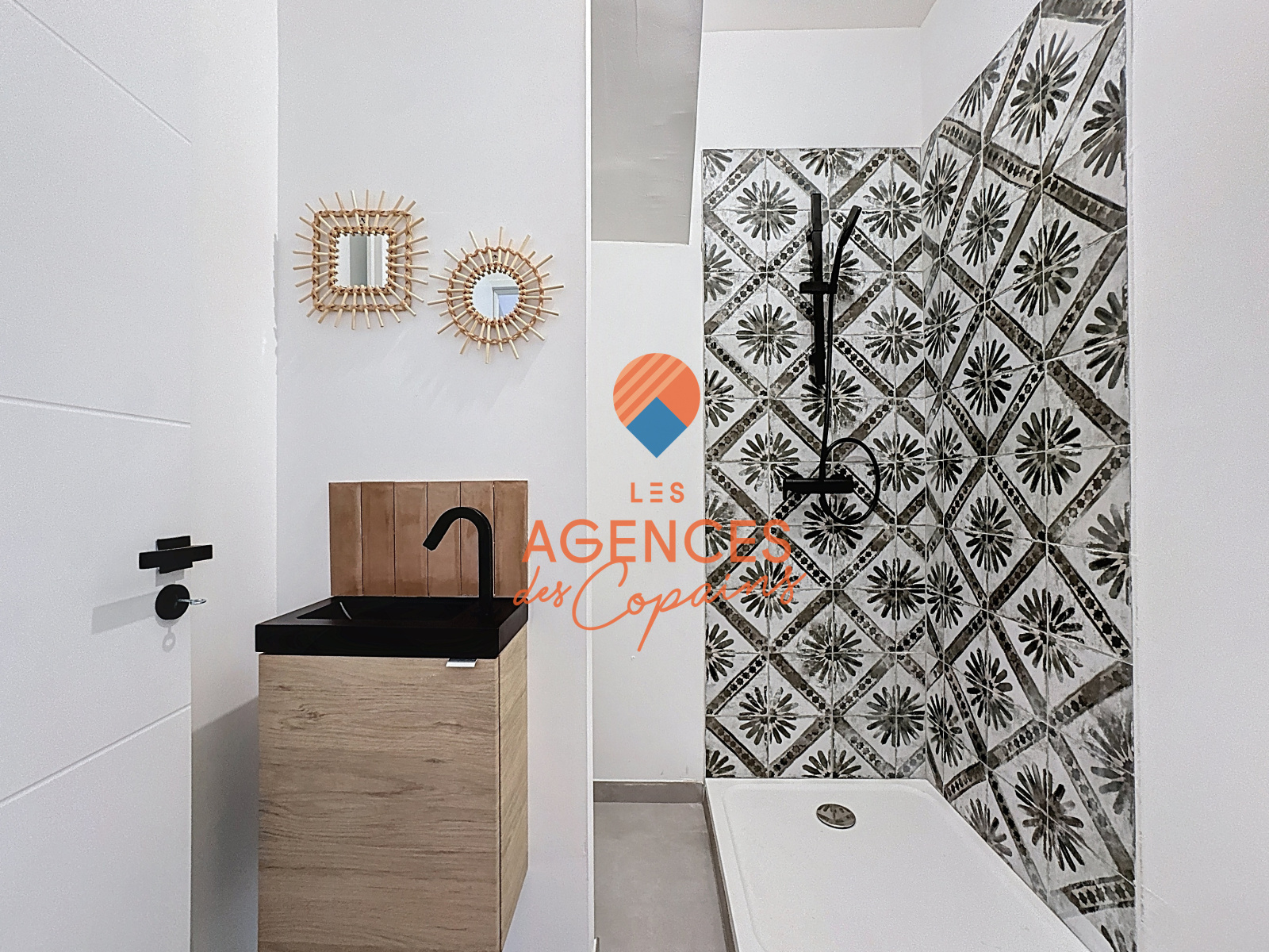 Le T2 se situe à l'arriere du jardin . Totalement indépendant et d'une surface de 38 m² il dispose d'un séjour avec cuisine américaine, d'une chambre avec salle d'eau et WC .