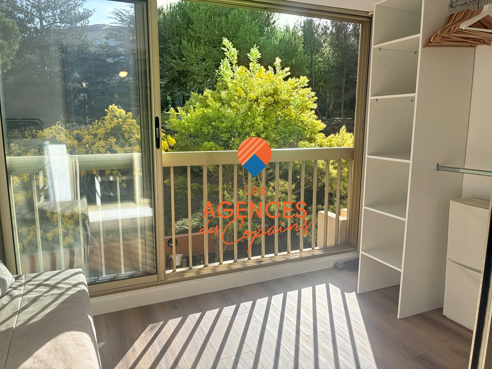 La pièce de vie se prolonge sur une agréable loggia de 6m² avec vue dans la pinède et sans vis à vis.
