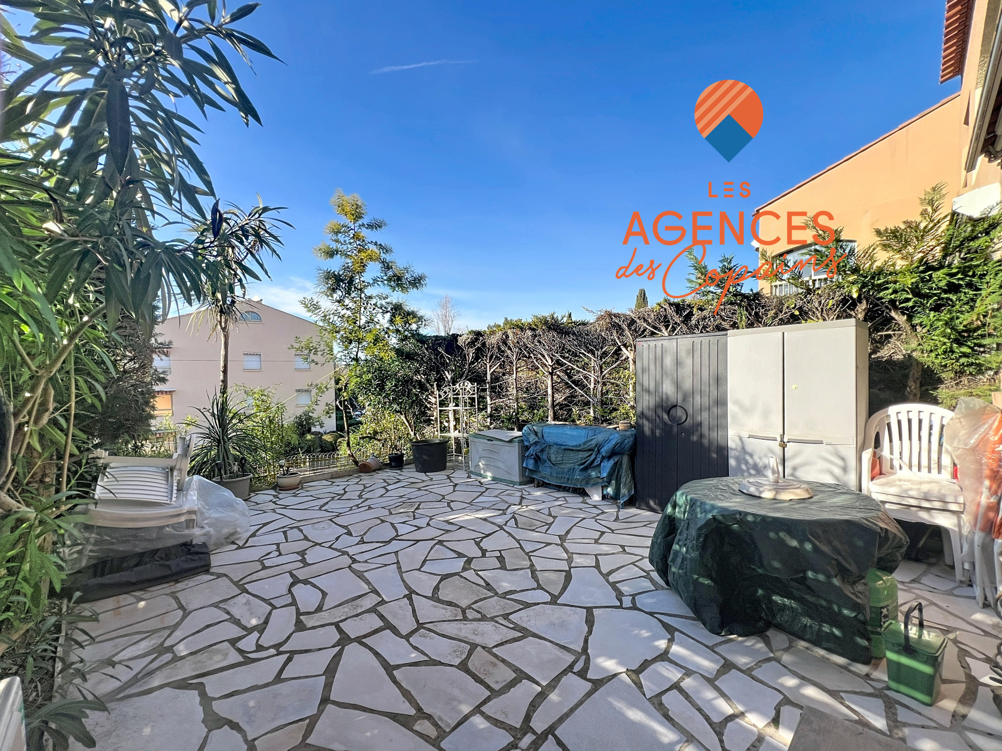 SAINT-MANDRIER, PIN ROLLAND, SUPERBE T2 + COIN CABINE, EN REZ-DE-JARDIN, composé d'une pièce principale avec cuisine américaine et loggia, chambre, coin nuit avec fenêtre, salle d'eau, WC séparés, belle terrasse de 50 m² environ. Parking de copropriété et cave. Idealement situé, PROCHE COMMERCES, PLAGES ET TRANSPORTS.