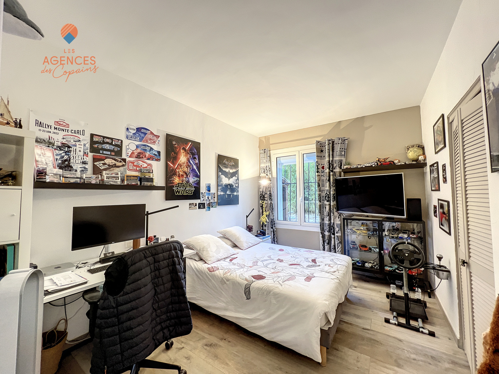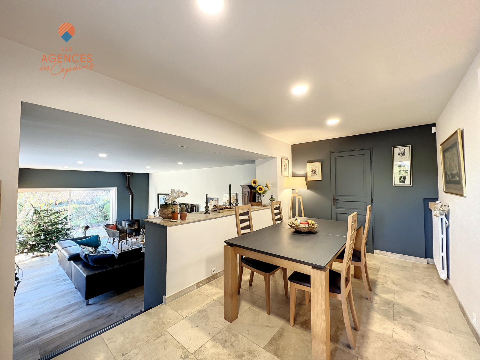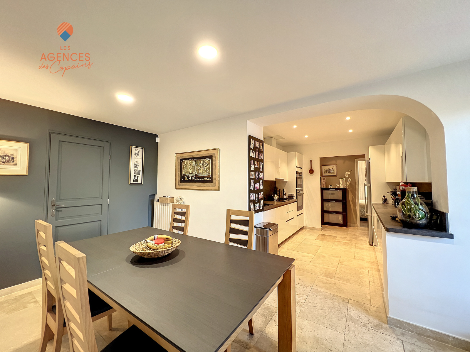 En rez de jardin: un magnifique 6 pièces ( 4 chambres) de 150 m², cuisine équipée, salon salle-à-manger 48 m² ouvrant sur terrasse, jardin arboré et piscine de 9x5 avec rideau électrique, buanderie 25 m², boulodrome, 4 stationnements prestations de qualité, entièrement rénové.