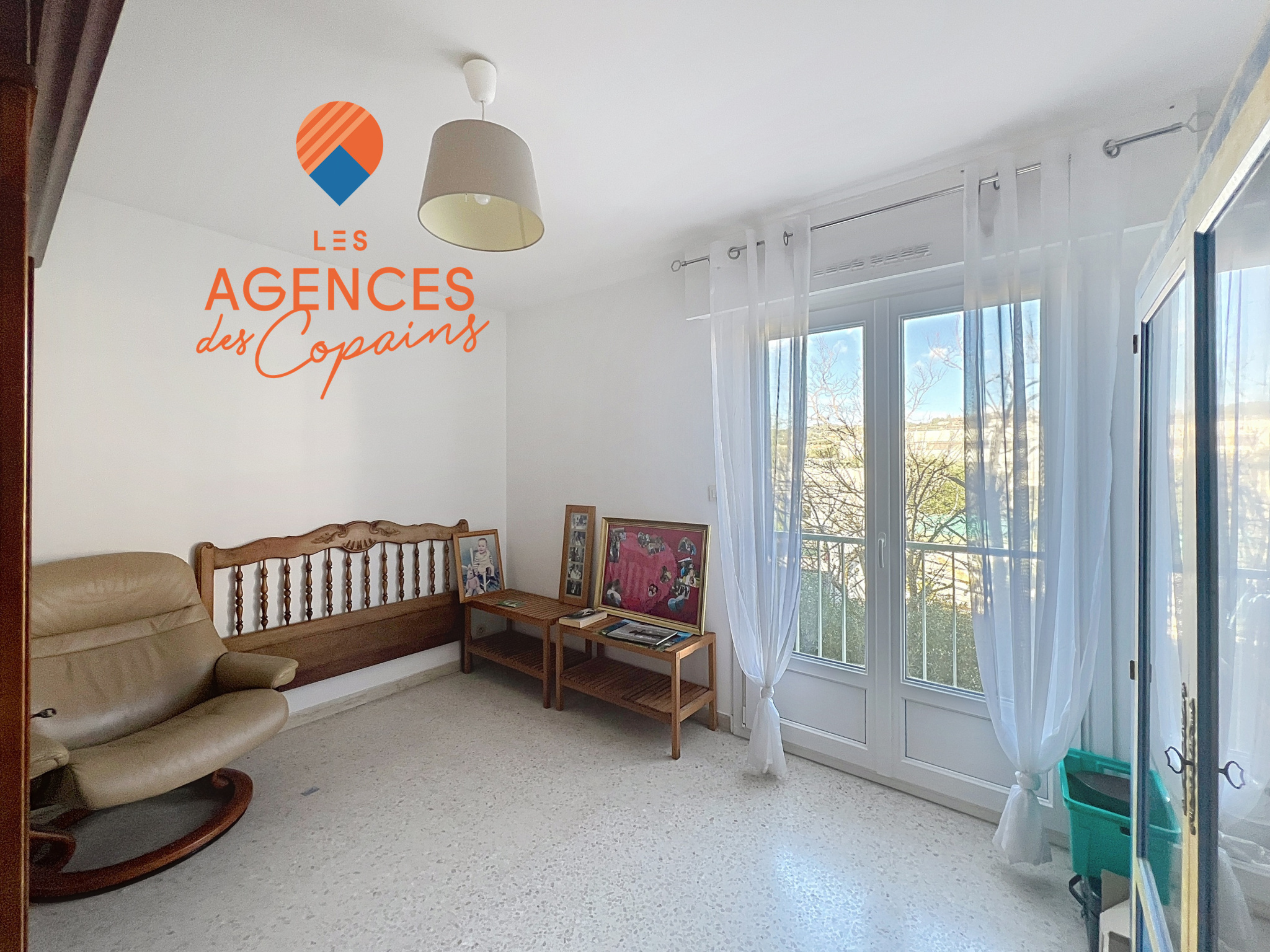BANDOL, RENE CROS, VASTE T3 TRAVERSANT AVEC ASCENSEUR ET TERRASSE VUE MER AU CALME dans une copropriété sécurisée avec places de parking, plages et commerces à pied.