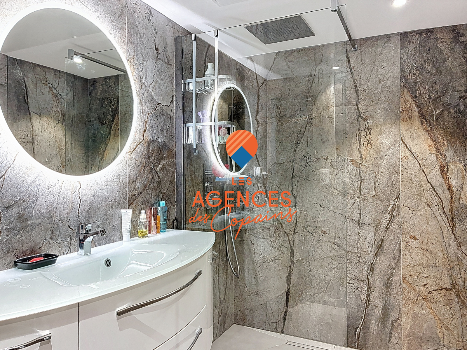 Cet appartement type 3 se situe au premier étage, accessible par ascenseur et est composé d'une entrée, un beau séjour de 30m² avec cuisine américaine toute équipée donnant sur une magnifique terrasse de 15m² avec vue mer et exposé au sud ouest, une suite avec chambre et salle d'eau privative, une chambre avec son cabinet de toilettes et un point d'eau.